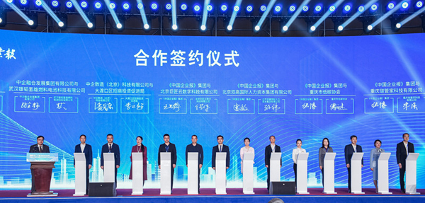 會(huì)議還舉行了集中簽約儀式?!吨袊?guó)企業(yè)報(bào)》集團(tuán)與航天科工海鷹集團(tuán)有限公司、北京巨匠云數(shù)字科技有限公司、北京雙高國(guó)際人力資本集團(tuán)有限公司、重慶市低碳協(xié)會(huì)、重慶碳管家科技有限公司,中企融合發(fā)展集團(tuán)有限公司、武漢雄韜氫雄燃料電池科技有限公司,中企數(shù)造(北京)科技有限公司與大渡口區(qū)政府分別舉行了合作簽約儀式。下一步,《中國(guó)企業(yè)報(bào)》集團(tuán)將與簽約各方進(jìn)行深入長(zhǎng)期的合作,為促進(jìn)產(chǎn)業(yè)升級(jí)發(fā)展和政企互動(dòng)合作夯基礎(chǔ),建平臺(tái),增動(dòng)力。
