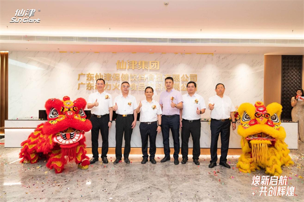 在瑞獅吐福的喜慶氣氛中,政府及行業(yè)各界嘉賓與仙津集團領(lǐng)導高層,移步至揭牌儀式區(qū),松山湖黨工委委員、管委會委員黃鏡銓、松山湖管委會總經(jīng)濟師兼北部片區(qū)黨委書記陳潮暉、中國食品工業(yè)協(xié)會顧問張俊修、東莞市工商聯(lián)主席黃建平、東莞市上市公司協(xié)會會長林海川,廣東仙津集團有限公司董事長鄧志華共同為仙津集團揭牌,標志著仙津集團拉開嶄新序幕,走向全新征程!
