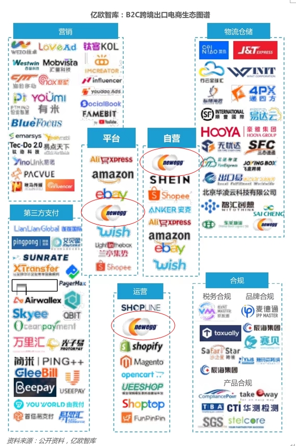 2023年國內(nèi)知名研究機(jī)構(gòu)億歐發(fā)布權(quán)威報(bào)告,其中談到出口跨境電商的生態(tài)建設(shè)一直處于較為單點(diǎn)部署的狀態(tài),獨(dú)立的生態(tài)伙伴解決獨(dú)立的問題。構(gòu)建屬于自己的生態(tài)競爭壁壘,需要尋找能夠?qū)⒏鳝h(huán)節(jié)的生態(tài)服務(wù)串聯(lián)起來的媒介,這個(gè)媒介就是第三方平臺(tái)。如亞馬遜、新蛋 、易貝等第三方平臺(tái),其具有足夠健全完善的生態(tài)服務(wù)體系,覆蓋從建站、營銷、倉儲(chǔ)、物流、運(yùn)營、支付、供應(yīng)鏈管理各環(huán)節(jié)服務(wù),在注重特殊性、精細(xì)化的同時(shí)滿足合規(guī)需求;同時(shí)依靠平臺(tái)的規(guī)模性,能夠形成較好 的議價(jià)能力,提供性價(jià)比更高、更為可靠的服務(wù)。