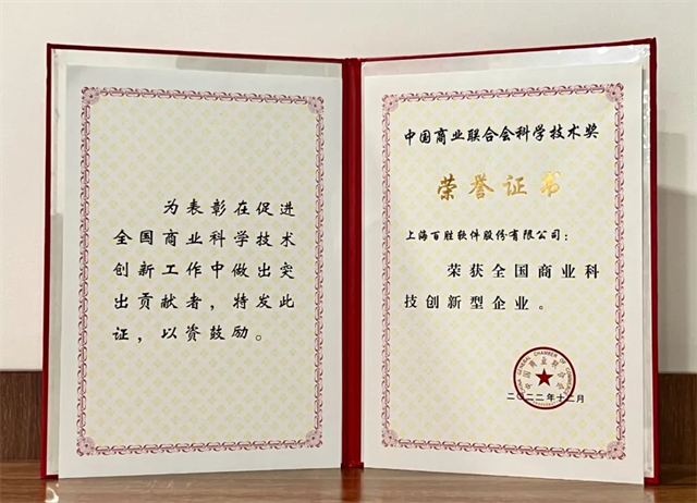 經過中國商業(yè)聯(lián)合會評審專家組的嚴格評審,百勝軟件憑借在零售領域的諸多技術創(chuàng)新和推動行業(yè)發(fā)展的突出貢獻,榮膺“2022年全國商業(yè)科技創(chuàng)新型企業(yè)”,公司實力再獲權威認可。