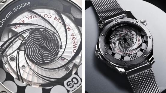 一只歐米茄海馬系列300米腕表居然在機(jī)芯上做出“動(dòng)態(tài)畫面”,這是“活動(dòng)人偶”嗎?當(dāng)然不是。這一標(biāo)志性的電影鏡頭采用微結(jié)構(gòu)金屬鍍層制成,并在藍(lán)寶石玻璃表背之下呈現(xiàn)出動(dòng)態(tài)效果。歐米茄在機(jī)芯底部,巧妙地使用一個(gè)轉(zhuǎn)動(dòng)的鋁盤,在鋁盤上,有4幀人物畫面,以及黑白相間的螺旋。鋁盤通過秒針帶動(dòng)旋轉(zhuǎn),旋轉(zhuǎn)起來后,4幀人物畫面,連續(xù)起來,就有動(dòng)態(tài)效果了。手表秒針一直走,動(dòng)畫效果就會(huì)不停播放,周而復(fù)始。