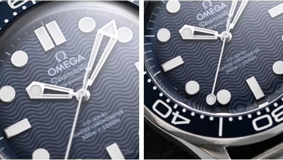 海馬300米“詹姆斯·邦德60周年紀(jì)念款”腕表的盤面,使用激光雕刻的波紋圖案,這一造型和上世紀(jì)90年代的早期海馬300米腕表保持一致,但取消了日歷。需要注意的是,新款腕表的秒針使用了“棒棒糖”秒針,其在歐米茄古董腕表中經(jīng)常出現(xiàn),是歐米茄復(fù)古風(fēng)格的一個(gè)特征。在售的海馬300腕表和2015年的《007:幽靈黨》中,詹姆斯·邦德佩戴的歐米茄海馬300腕表(注意:海馬300和海馬300米不是同一枚腕表)中同樣帶有罕見的“棒棒糖”秒針。