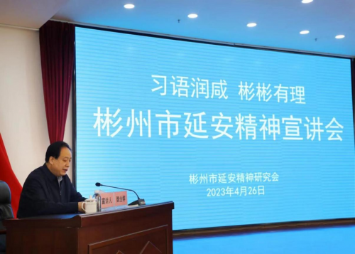 “習(xí)語潤咸,彬彬有理”彬州市延安精神宣講會按照省、市延安精神研究會的總體部署和彬州市委、市政府的要求,進(jìn)機(jī)關(guān)、進(jìn)企業(yè)、進(jìn)學(xué)校、進(jìn)農(nóng)村、進(jìn)社區(qū)、進(jìn)網(wǎng)站開展活動(dòng)。2023年4月26日,會長魏全群同志帶領(lǐng)彬州市延安精神研究會理事成員赴文家坡煤礦進(jìn)行延安精神宣講報(bào)告會。宣講報(bào)告會在文家坡煤礦綜合樓三樓會議室舉辦,由工信局副局長齊靜同志主持,魏全群會長主講。宣講內(nèi)容以延安精神的基本內(nèi)容、形成歷史、傳承的意義分為三部分來一一講述。