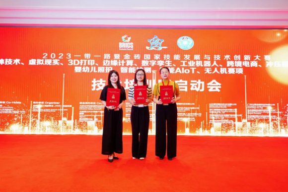 會(huì)上,金職偉業(yè)總經(jīng)理潘建明、董事長(zhǎng)助理兼品牌運(yùn)營(yíng)總監(jiān)周娟、技術(shù)研發(fā)中心主任陳萬(wàn)方、副主任李偲婧受聘為2023一帶一路暨金磚國(guó)家技能發(fā)展與技術(shù)創(chuàng)新大賽技術(shù)委員會(huì)技術(shù)委員。同時(shí),金職偉業(yè)成功入選一帶一路暨金磚國(guó)家技能發(fā)展國(guó)際聯(lián)盟會(huì)員單位,并被授予榮譽(yù)證書。