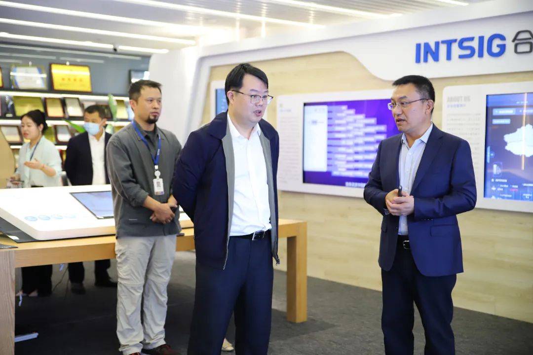 調(diào)研過程中,上海市金融工作黨委委員、市地方金融監(jiān)管局副局長管小軍一行首先參觀了市北高新園區(qū)企業(yè)AI體驗館,深入了解園區(qū)功能定位、特色產(chǎn)業(yè)布局、科技創(chuàng)新投入等情況。在園區(qū)大數(shù)據(jù)與人工智能領(lǐng)域代表性企業(yè)合合信息,公司董事長、總經(jīng)理鎮(zhèn)立新博士詳細介紹了智能文字識別及商業(yè)大數(shù)據(jù)技術(shù)及產(chǎn)品。