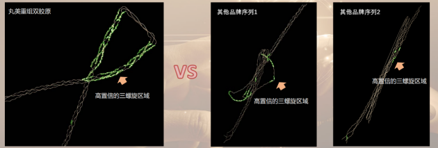 “三股螺旋”結構被稱為“房子的屋梁”,對膠原蛋白的生物活性表達至關重要。而在業(yè)內(nèi),真正實現(xiàn)三股螺旋結構的膠原蛋白原料寥寥無幾。