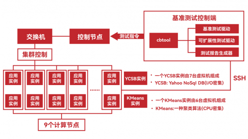 Benchmark是SPEC開發(fā)的基于大數(shù)據(jù)場景下的云基準標準測試套件,用以衡量云計算的性能,Benchmark基準測試模型主要測試的是IaaS云平臺性能。SPEC