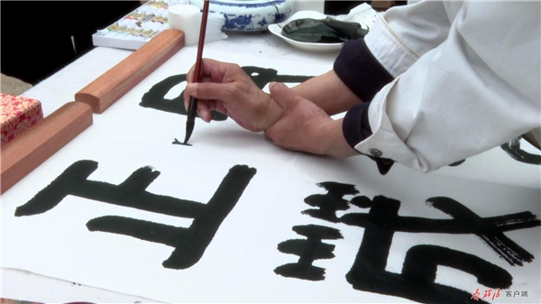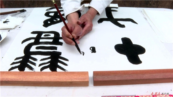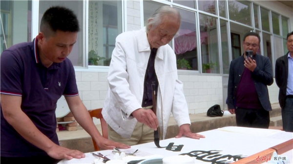 在農(nóng)家小院,閻正正在聚精會(huì)神地?fù)]毫潑墨,他在筆墨的運(yùn)用上別出心裁、匠心獨(dú)運(yùn),流暢的線條蒼勁有力,書法作品淋漓盡致地展現(xiàn)于尺幅之上。談起他創(chuàng)作的靈感,閻正說,“莊浪歷史悠久、文化底蘊(yùn)深厚、森林植被覆蓋率高,儼然一幅天然山水畫。莊浪縣云崖寺自然風(fēng)光秀麗,石窟藝術(shù)精美,有遠(yuǎn)山、有水庫、有寺廟,它完全具備中國(guó)畫的每一個(gè)條件?!?/p>