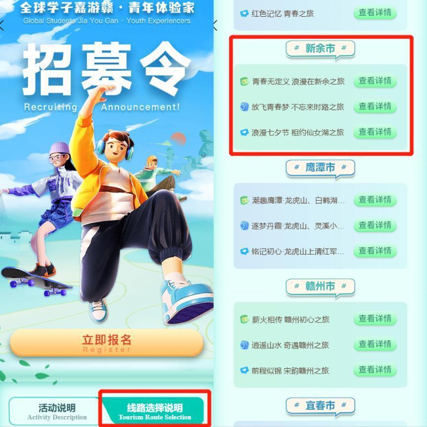 1.所有報(bào)名者均可享受各地優(yōu)惠政策,各地將從報(bào)名者中選擇邀請(qǐng)“嘉游贛·青年體驗(yàn)家”。