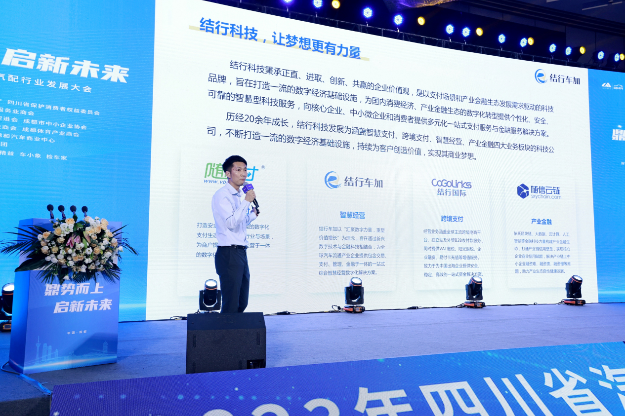 2023年6月11日,由四川省汽車汽配服務(wù)業(yè)商會(huì)主辦、豆秒好車集團(tuán)承辦的“2023年四川省汽車汽配行業(yè)發(fā)展大會(huì)”在成都隆重舉行,本次峰會(huì)以“鼎勢(shì)而上·啟新未來(lái)”為主題,廣邀800+車商和四川及全國(guó)汽車行業(yè)商協(xié)會(huì)、政府主管部門等相聚蓉城,共商行業(yè)的變革與機(jī)遇。結(jié)行科技旗下汽車資產(chǎn)數(shù)字化服務(wù)平臺(tái)結(jié)行車加也受邀參會(huì),副總經(jīng)理史云峰先生在會(huì)上做了精彩分享。