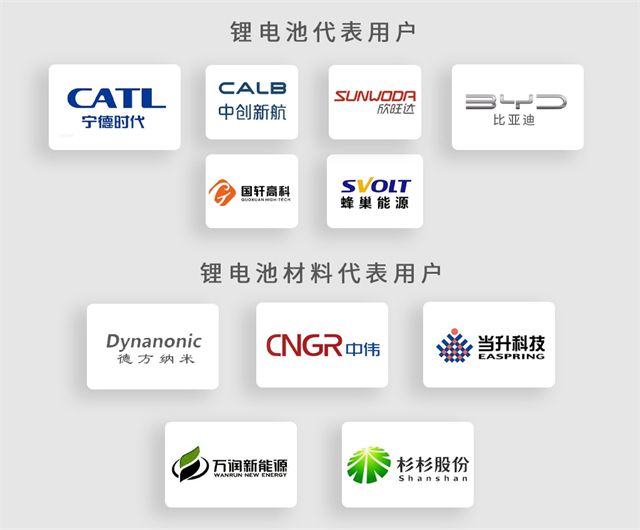 鋰電池企業(yè):寧德時(shí)代?,比亞迪?,中創(chuàng)新航,國(guó)軒高科,欣旺達(dá),蜂巢能源等。鋰電材料企業(yè):德方納米,中偉股份,當(dāng)升科技,湖北萬(wàn)潤(rùn),杉杉股份等,均為我公司長(zhǎng)期用戶。