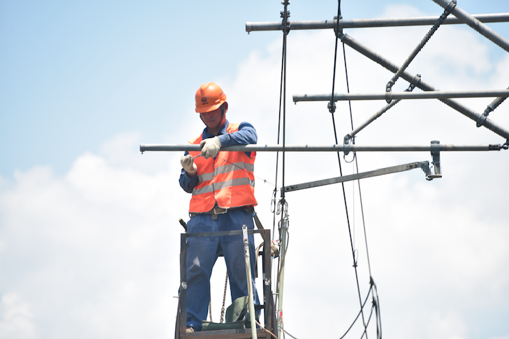 終于等到車梯豎起來(lái),“扶好車梯!”剛囑咐好輔助人員,劉冉就帶著小李竄到了車梯上,現(xiàn)在的他只想早點(diǎn)干完活,早點(diǎn)休息??蓜傞_(kāi)始干活沒(méi)一會(huì),劉冉看著腕臂上動(dòng)作又慢又變扭的小李就來(lái)了脾氣,“墨跡什么呢,身體貼在腕臂上干,搞快點(diǎn)!”“劉工,主要是這腕臂太燙了?!毙±詈芪慕忉尩?。不光線路上熱,此時(shí)支柱上的金屬設(shè)備因?yàn)闀窳艘簧衔?#xff0c;溫度已經(jīng)超過(guò)50℃,帶著手套還感覺(jué)不出來(lái),但隔著一層薄衣服的話就燙的難受?!澳阏拒囂菘蚶锔?#xff0c;我過(guò)去?!笨吹皆O(shè)備溫度都這么高,此時(shí)的劉冉更擔(dān)心大家的身體,可千萬(wàn)別中暑了啊。
