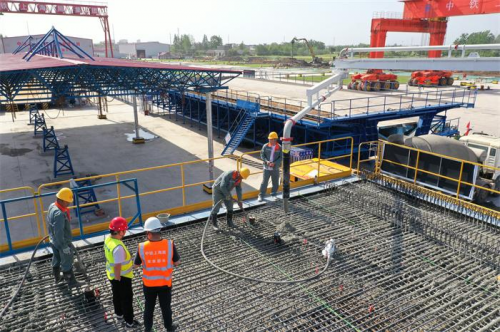4月30日上午,由中鐵上海工程局承建的巢馬城際鐵路5標(biāo)馬鞍山制梁場(chǎng)首孔箱梁順利完成澆筑,標(biāo)志著該梁場(chǎng)正式進(jìn)入試生產(chǎn)階段,為巢馬城際鐵路如期實(shí)現(xiàn)通車(chē)目標(biāo)打下了堅(jiān)實(shí)基礎(chǔ)。
