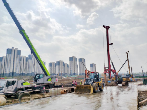 截至目前,項(xiàng)目前期四證已辦理完成,臨時(shí)用水接駁施工、圍擋施工、沖洗平臺(tái)搭建、臨電供電配置、支護(hù)樁及工程樁施工已基本完成,目前正在進(jìn)行主樓土方開挖和塔吊安裝工作。