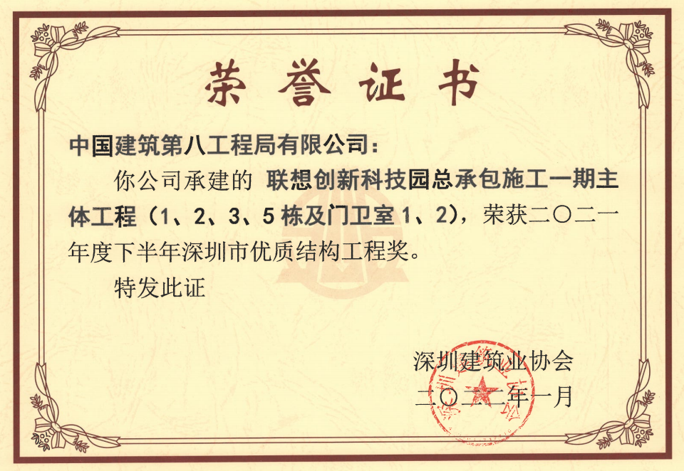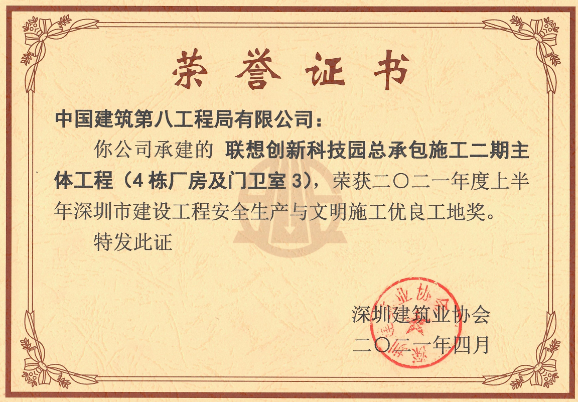項(xiàng)目先后取得了深圳市優(yōu)質(zhì)結(jié)構(gòu)工程獎(jiǎng)與深圳市建設(shè)工程安全生產(chǎn)及文明施工優(yōu)良工地等獎(jiǎng)項(xiàng),為業(yè)主交付滿意工程,高品質(zhì)完成項(xiàng)目建設(shè)任務(wù)。