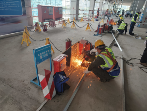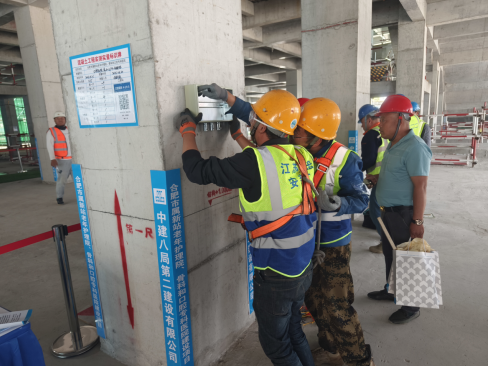 競(jìng)賽結(jié)束后,開展了新站醫(yī)院項(xiàng)目施工現(xiàn)場(chǎng)安全質(zhì)量觀摩活動(dòng)。觀摩人員對(duì)觀摩項(xiàng)目采用的“鍍鋅盤扣+鋼板網(wǎng)”防護(hù)體系、鍍鋅盤扣內(nèi)支撐架體系的安全性等展開了積極討論,并給予高度評(píng)價(jià),對(duì)項(xiàng)目采取的“三區(qū)”(防墜區(qū)、走道區(qū)、料場(chǎng)區(qū))分離的超前策劃以及“三色聚氨酯”“混凝土攔茬”等創(chuàng)新技術(shù)應(yīng)用進(jìn)行了深入了解。