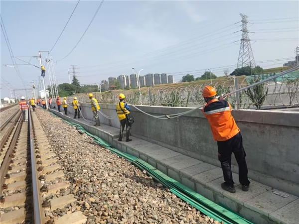 隨著作業(yè)人員默契配合下,起錨、放線、滑輪懸掛固定、落錨等各個(gè)工序有序推進(jìn),中國中鐵電氣化局運(yùn)管公司上海維管處合肥維管段橫跨包公大道供電線恢復(fù)架設(shè),標(biāo)志著淮南線接觸網(wǎng)遷改施工進(jìn)入最后階段。