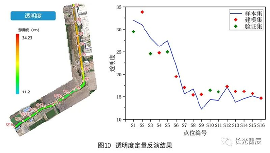 精度評定結(jié)果見表2.各水質(zhì)參數(shù)的平均相對誤差均在25%以下,可滿足常態(tài)化、高頻次的全局水質(zhì)檢測需求。化學(xué)需氧量反演誤差稍大是因為該條河道整體水質(zhì)情況存在較大的空間異質(zhì)性,河道不同河段中有機物含量差異較大,而水體化學(xué)需氧量與有機物濃度密切相關(guān),所以這種變化較快的梯度可能會引入一定的誤差,模型也有繼續(xù)優(yōu)化的空間。