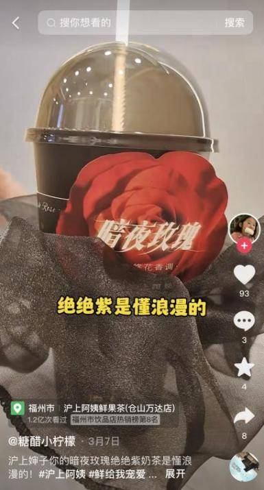 滬上阿姨聯(lián)合抖音生活服務(wù)「春光好食節(jié)」?fàn)I銷節(jié)點(diǎn),線上圍繞熱點(diǎn)話題#奶茶可以這么浪漫的不多,完成了一次“現(xiàn)象級(jí)”的新品營(yíng)銷活動(dòng)。配合春日營(yíng)銷氛圍,滬上阿姨重點(diǎn)鋪設(shè)以優(yōu)質(zhì)浪漫為主的種草視頻,貼合新品氣質(zhì)的同時(shí),也能為消費(fèi)者營(yíng)造滿滿的節(jié)日氛圍。為了配合新品內(nèi)容上線節(jié)奏上,將更多資源集中在新品上線5天,聯(lián)動(dòng)超過(guò)20位高粉達(dá)人集中鋪設(shè)了超過(guò)千條種草視頻,力求在短時(shí)間內(nèi)迅速引爆新品,達(dá)成新品即爆品。新品上市3天售賣(mài)超63萬(wàn)杯,達(dá)人視頻投稿數(shù)3萬(wàn)余條,視頻總播放量超2億,抖音站內(nèi)搜索環(huán)比增長(zhǎng)超過(guò)190%。