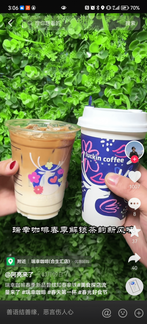 咖啡品類更是春日營(yíng)銷的主力軍,3 月 6 日,瑞幸官宣新品「碧螺知春拿鐵」,新品與被譽(yù)為「鄉(xiāng)村超?!沟年懴扇撕献?。在新品推介過(guò)程中,瑞幸不僅將直播間搬到了生茶園,打造沉浸式的直播體驗(yàn),讓用戶在觀看直播享受“寵粉式”福利的同時(shí),感受到濃濃的春日氛圍感。不僅如此,瑞幸邀約了一萬(wàn)名LV3以上的短視頻達(dá)人,借助帶貨達(dá)人力量為瑞幸茶咖季種草引流,引發(fā)站內(nèi)視頻投稿數(shù)4.7萬(wàn)條。同期,瑞幸咖啡篩選了33位直播達(dá)人,在多城市開(kāi)展了“瑞幸茶咖季”為主題的系列達(dá)人直播,通過(guò)直播達(dá)人承接品牌官方自播熱度和流量?!复汗夂檬彻?jié)」?fàn)I銷節(jié)點(diǎn)中,通過(guò)短視頻種草、官方直播及達(dá)人直播,以一系列別具一格的“茶咖大秀”實(shí)現(xiàn)破圈層營(yíng)銷,迅速完成種草全網(wǎng),最終獲得破億的支付GMV。