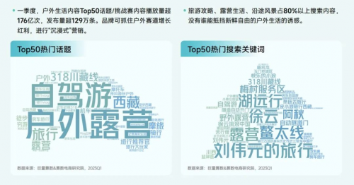 從話題層面看,人們對自駕游、旅游目的地、旅行方式和露營等相關話題最感興趣,表現(xiàn)出對自然的熱愛,享受戶外生活的自由與快樂。