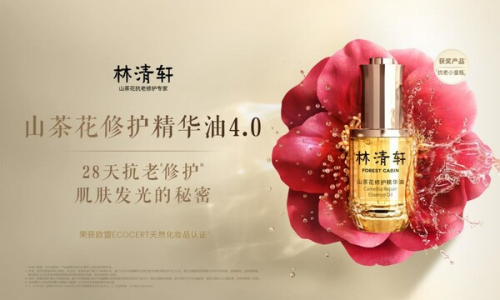 在品類紅利之下,林清軒乘勝追擊,今年3月官宣品牌升級,定位由"山茶花修護專家"升級為"山茶花抗老修護專家"。這也就意味著,林清軒正式入局肌膚"抗老"賽道。在抗老賽道上,林清軒還有一個"讓人類與地球的肌膚更美"的夙愿。