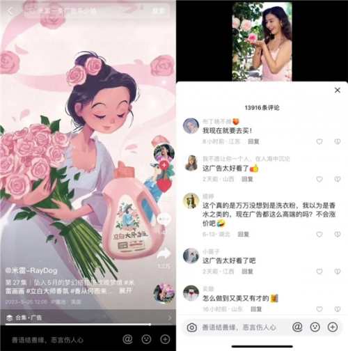 事實上,這條收獲無數(shù)關(guān)注度和好評的短視頻,是立白大師香氛的廣告投放。能夠讓用戶和消費者主動認可一條廣告,殊為不易。立白大師香氛洗衣液也因此在短視頻平臺上成為討論的焦點,向年輕人心中的高端洗衣液靠攏。