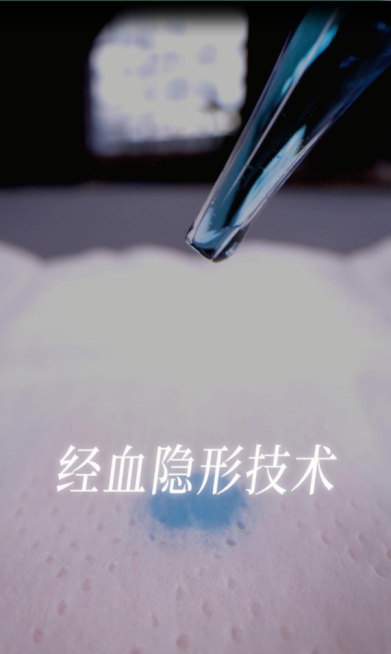 因此,從女性體感出發(fā),棉密碼無(wú)痕系列的面層、芯體全面創(chuàng)新。其中一大亮點(diǎn)在經(jīng)血隱形科技上,在面層與芯體材質(zhì)的共同作用下,能夠在經(jīng)血接觸后快速下滲,并在底部擴(kuò)散,視覺看起來(lái)表面只有一點(diǎn)點(diǎn),減少表層接觸肌膚的粘膩度,從而真正實(shí)現(xiàn)“視覺無(wú)感”。