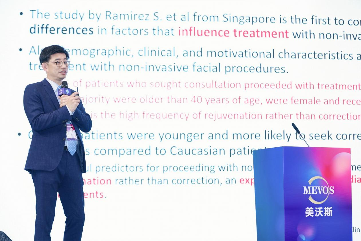 5月5日,美沃斯國(guó)際醫(yī)學(xué)美容大會(huì)特邀嘉賓——黃柏翰皮膚專(zhuān)科美容醫(yī)學(xué)診所黃柏翰醫(yī)師在分享全面部輪廓注射經(jīng)驗(yàn)時(shí)提到,注射填充物能實(shí)現(xiàn)明顯面部改善效果,其中膠原蛋白填充劑因其不透明性,能夠有效降低丁達(dá)爾風(fēng)險(xiǎn),因而成為醫(yī)師首選填充物之一。黃醫(yī)師在演講中特別指出,東方人面部輪廓偏寬,醫(yī)師在進(jìn)行臨床診療時(shí),應(yīng)根據(jù)東方人面部老化特點(diǎn)以及求美者需求進(jìn)行產(chǎn)品選擇和方案設(shè)計(jì),盡量使臨床方案實(shí)現(xiàn)個(gè)性化、高效化。黃醫(yī)師表示,注射填充劑的量沒(méi)有公式可言,醫(yī)師要成為一名雕塑家,用雙手打造求美者未來(lái)的美麗!