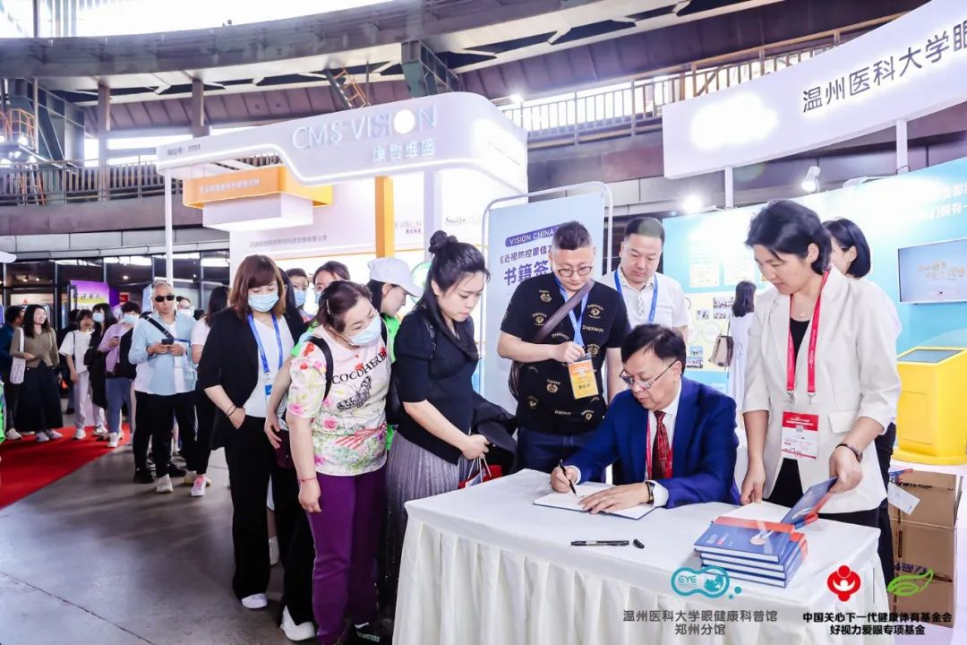 瞿佳教授一直致力于科普護(hù)眼,這次VC大會(huì),瞿佳教授亮相3T02展位(溫州醫(yī)科大學(xué)眼健康科普館鄭州分館)親筆簽贈(zèng)新書(shū)——《近視防控瞿佳2023觀點(diǎn)》!展位現(xiàn)場(chǎng)吸引眾多觀眾,排隊(duì)人員爆滿,此次簽贈(zèng)會(huì)帶動(dòng)眾人關(guān)注科普公益與護(hù)眼科普!