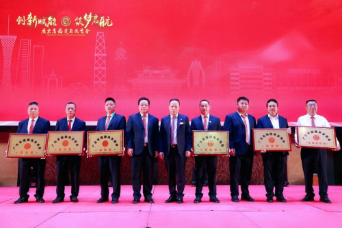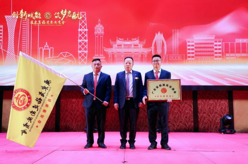 廣州市工商聯(lián)副主席余劍春為理事長(zhǎng)顏龍坤授牌