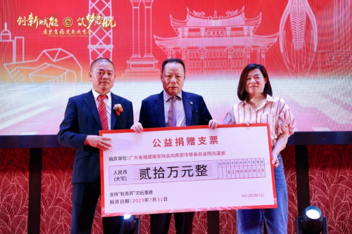 就職典禮上,廣東省福建南安商會(huì)積極響應(yīng)南安市委統(tǒng)戰(zhàn)部、市工商聯(lián)、市慈善總會(huì)號(hào)召,向南安市同心陽(yáng)光基金捐贈(zèng)人民幣20萬(wàn)元,用于助力家鄉(xiāng)“杜蘇芮”臺(tái)風(fēng)災(zāi)后重建工作。