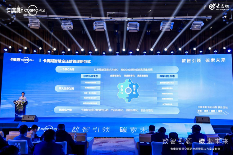 本屆大會以“數智引領 碳索未來”為主題,聚焦工業(yè)領域空壓站場景的數字化、綠色化轉型升級,發(fā)布行業(yè)數字化解決方案,探討數字化、綠色化“雙化協同”下,行業(yè)未來發(fā)展趨勢??▕W斯COSMOPlat智慧空壓站全場景解決方案及空壓站智控云平臺的發(fā)布,為數字孿生、區(qū)塊鏈、工業(yè)互聯網等新技術落地提供了典型應用場景。