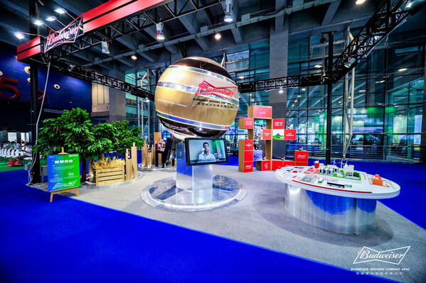 百威作為可持續(xù)發(fā)展的先行者,本次展臺遵循綠色低碳的設(shè)計理念,采用更具可持續(xù)性的材料分展區(qū)展示百威在ESG策略、綠色生產(chǎn)和綠色物流、水資源管理、智慧農(nóng)業(yè)、循環(huán)包裝等方面的豐碩成果。其中地球形狀的循環(huán)裝置采用了由百威啤酒糟回收制作而成的植物基皮革、環(huán)保紙等可回收再生的包裝材料,整體布局風(fēng)格充分體現(xiàn)了"綠動未來"的參展主題特色。一直以來,百威將可持續(xù)發(fā)展理念貫穿業(yè)務(wù)始終,憑借極具前瞻性的戰(zhàn)略目標(biāo),配合強大的本土執(zhí)行能力,在本屆盛會交出了一份亮眼的綠色發(fā)展"成績單",吸引眾多嘉賓觀眾駐足參觀交流。