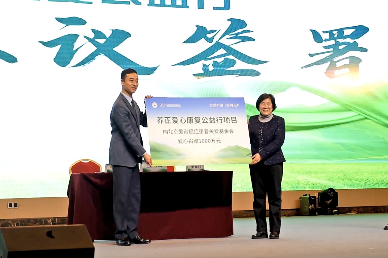 為了推動(dòng)公益事業(yè)的發(fā)展,造福腫瘤患者,會(huì)上,“養(yǎng)正愛(ài)心康復(fù)公益行項(xiàng)目”正式啟動(dòng),并舉行了戰(zhàn)略簽約和捐贈(zèng)儀式?!梆B(yǎng)正愛(ài)心康復(fù)公益行項(xiàng)目”將向中國(guó)抗癌協(xié)會(huì)康復(fù)分會(huì)、北京愛(ài)譜癌癥患者關(guān)愛(ài)基金會(huì)捐贈(zèng)1000萬(wàn)元,用于舉行系列愛(ài)心公益活動(dòng)。中國(guó)抗癌協(xié)會(huì)康復(fù)分會(huì)名譽(yù)主任委員、北京愛(ài)譜癌癥患者關(guān)愛(ài)基金會(huì)主席史安利介紹,該項(xiàng)目旨在加強(qiáng)公眾對(duì)腫瘤疾病的認(rèn)識(shí)和了解,并以此為契機(jī)提升社會(huì)各界對(duì)癌癥防控事業(yè)的關(guān)注和支持,服務(wù)臨床、服務(wù)患者,推進(jìn)健康中國(guó)建設(shè)。