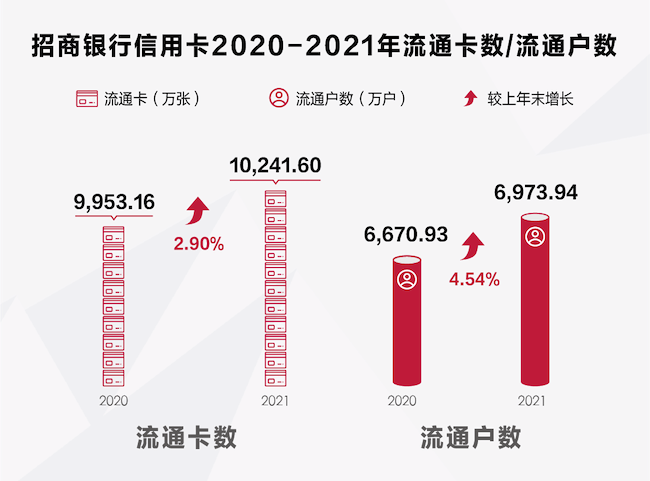 據(jù)財報,截至2021年底,招行信用卡流通卡量10241.6萬張,較上年末增長2.9%,首次突破1億張;流通戶數(shù)6973.94萬戶,較上年末增長4.54%。招行信用卡流通卡量、流通戶數(shù)在高位穩(wěn)步增長,與其從客戶視角出發(fā)推動產(chǎn)品升級,完善豐富的產(chǎn)品矩陣不無關(guān)系。