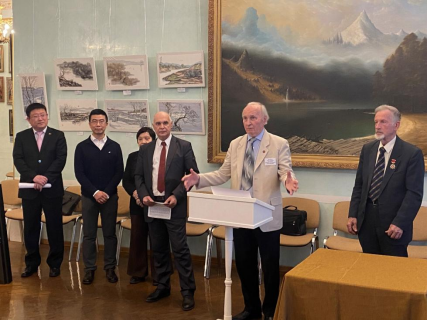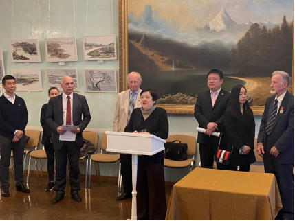 中俄人文合作發(fā)展中心理事長(zhǎng)尹斌先生在發(fā)言中談到:“藝術(shù)家劉子輿先生在莫斯科生活多年,在此期間,他給很多俄羅斯人傳授中國(guó)的水墨,為發(fā)揚(yáng)中國(guó)文化作出了巨大貢獻(xiàn)?!?/p>