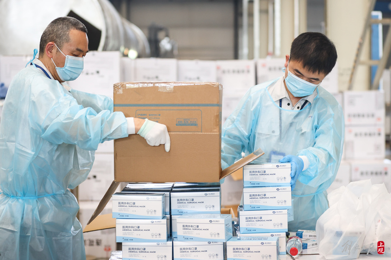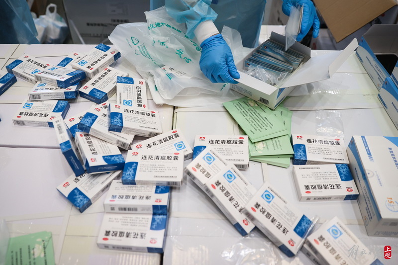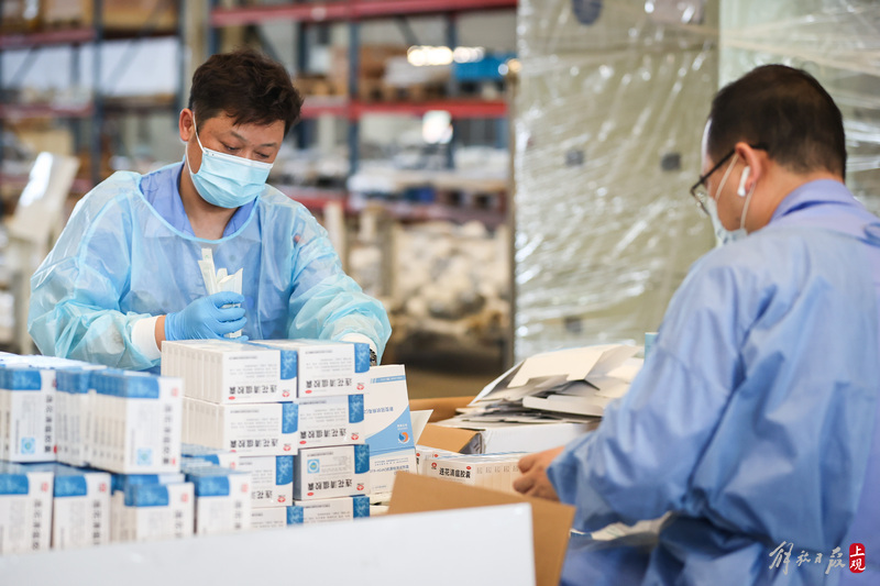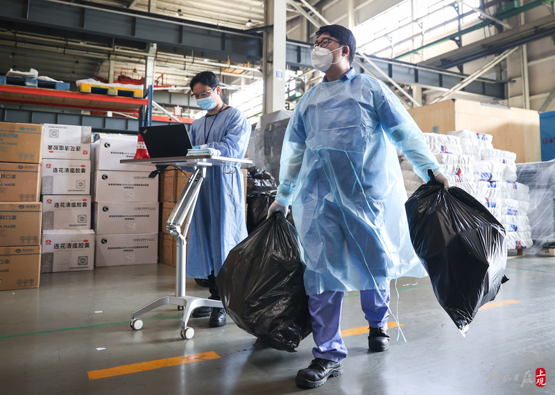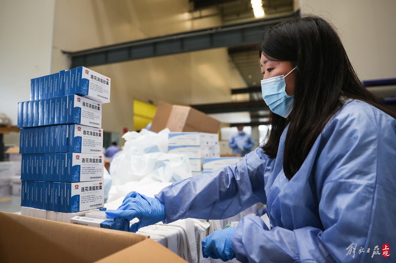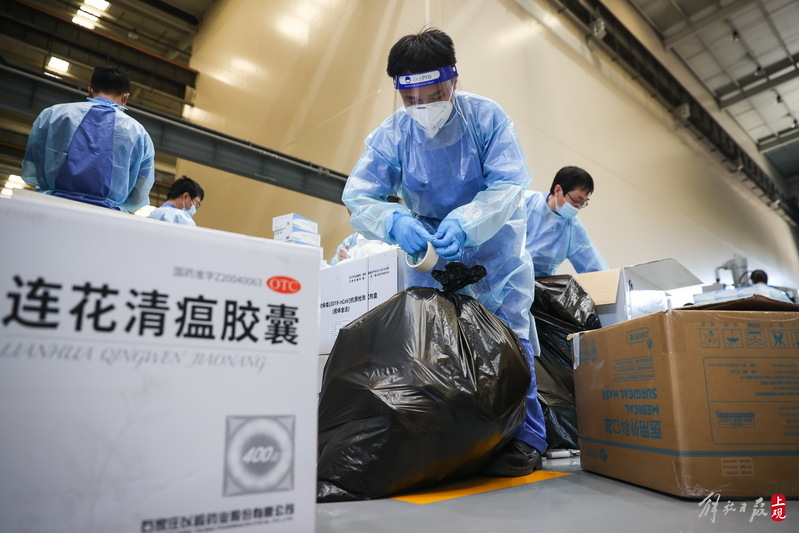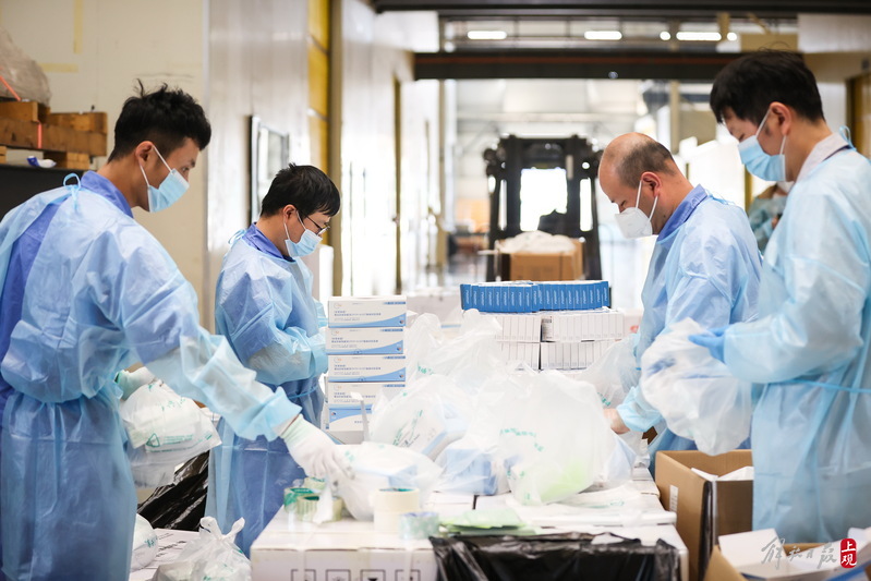 現(xiàn)場負(fù)責(zé)人楊東告訴記者:“我們是4月6日晚上接收到分裝任務(wù),目前累計打包送出8萬余份‘防疫服務(wù)包’,我們從早到晚能快一點就快一點,就想著盡快把物資打包好送到居民手中。”