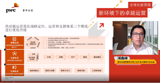 浦鑫峰表示,供應鏈正成為企業(yè)實現(xiàn)全球增長的重要手段之一,呈現(xiàn)全球化、定制化、智能化等發(fā)展趨勢。聚焦國內(nèi)眾多出海企業(yè),現(xiàn)有供應鏈體系多面臨短期無法充分滿足海外市場需求、中長期無法更好支撐海外業(yè)務發(fā)展以及全球化對供應鏈運營提出的更高要求等挑戰(zhàn)。普華永道結合成功項目經(jīng)驗及行業(yè)洞察,幫助企業(yè)通過對供應鏈戰(zhàn)略定位、運營體系和支撐體系三個維度的優(yōu)化升級,打造端到端卓越供應鏈運營能力,提升運營效率、實現(xiàn)規(guī)模經(jīng)濟效益、并優(yōu)化對海外業(yè)務的管理和管控,進一步推動全球化業(yè)務發(fā)展。