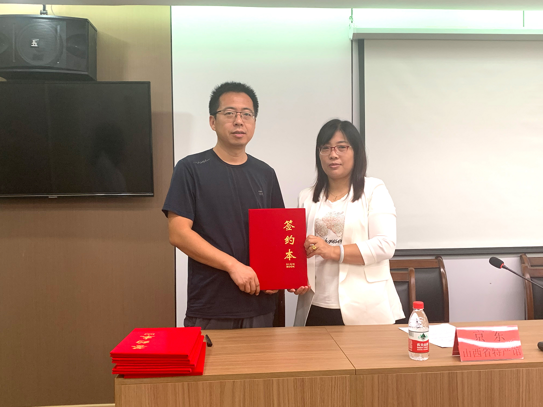 此次產(chǎn)銷對接會上,浮山縣康杰副食品有限公司郭杰、山西堯田農(nóng)業(yè)科技股份有限公司張振東以及浮山縣神山土特產(chǎn)品加工有限公司李準(zhǔn)作為農(nóng)產(chǎn)品企業(yè)代表上臺做重點推介。對接會現(xiàn)場專門設(shè)置了浮山農(nóng)產(chǎn)品展示區(qū),便于能近距離感受和體驗浮山的特色農(nóng)產(chǎn)品,現(xiàn)場洽談對接氛圍熱烈,隨后京東特產(chǎn)館負(fù)責(zé)人代表京東平臺與到場的13家企業(yè)簽訂產(chǎn)銷合同,達(dá)成戰(zhàn)略合作協(xié)議。