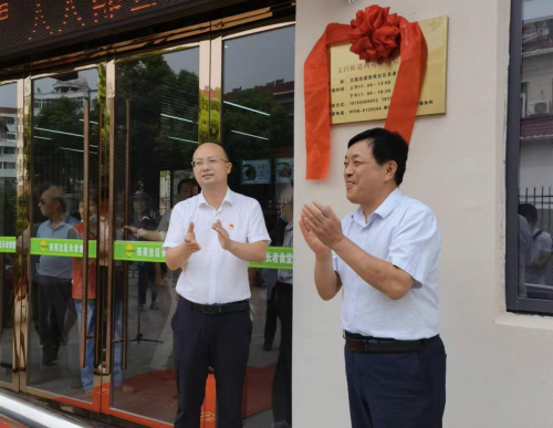 安徽省民政廳二級巡視員胡前義,桐城市委常委、組織部部長、統(tǒng)戰(zhàn)部部長、市政協(xié)黨組副書記儲江,中華志愿者協(xié)會關(guān)愛母嬰健康行動辦公室主任、中華志愿者雜志社安徽省聯(lián)絡(luò)處主任項五九,安慶市民政局四級調(diào)研員路興華,桐城市民政局局長高光柏,桐城市文昌街道黨工委書記疏波、文昌街道黨工委副書記、辦事處主任王延慶等領(lǐng)導(dǎo)參加揭牌儀式,胡前義、儲江為“長者食堂”揭牌。