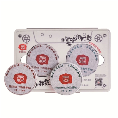 熟茶的溫潤感、生茶的山野氣,根據(jù)口味選擇生熟,8克輪回太極餅全部采用百年古樹頭春純料制作,無論是磁帶茶還是伴手禮,抑或是頂級珍藏老班章、冰島、500年單株、普洱王炸,都遵循極簡設計的風格。