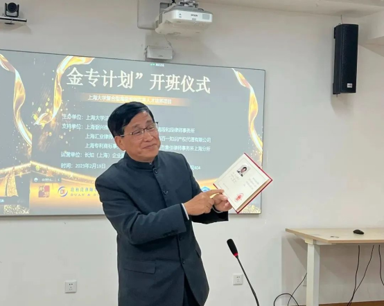 為響應《知識產權強國建設綱要》提出的知識產權人才培養(yǎng),上海大學法學院、知識產權學院依托上海市知識產權培訓基地、上海大學知識產權信息服務中心、上海國際貿易知識產權海外維權服務基地,聯(lián)合上海弼興律師事務所、上海段和段律師事務所、上海匯業(yè)律師事務所、上海百一知識產權代理有限公司、上海專利商標事務所和北京集佳律師事務所上海分所等六家知名專利事務所和律師事務所,產教融合,內外協(xié)同,面向上海大學全校理工科本科生和研究生,開展“金牌”專利代理師、專利工程師、專利律師等復合型專利實務人才培養(yǎng),通過線下實訓、實戰(zhàn)培訓,聚焦于培養(yǎng)專業(yè)性、高端性、復合型和緊缺型專利實務人才?!敖饘S媱潯笔侨珖状斡筛咝B?lián)合服務機構培養(yǎng)專利代理實務人才的培訓班。