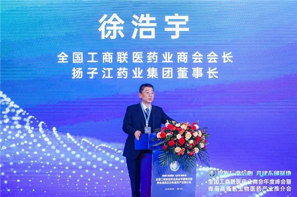 3月26日,全國工商聯(lián)醫(yī)藥業(yè)商會年度峰會暨青島高新區(qū)生物醫(yī)藥產(chǎn)業(yè)推介會在青島召開。全國工商聯(lián)醫(yī)藥業(yè)商會會長,揚(yáng)子江藥業(yè)集團(tuán)黨委書記、董事長、總經(jīng)理徐浩宇出席會議并致辭。醫(yī)藥行業(yè)700余位嘉賓參加本次會議。