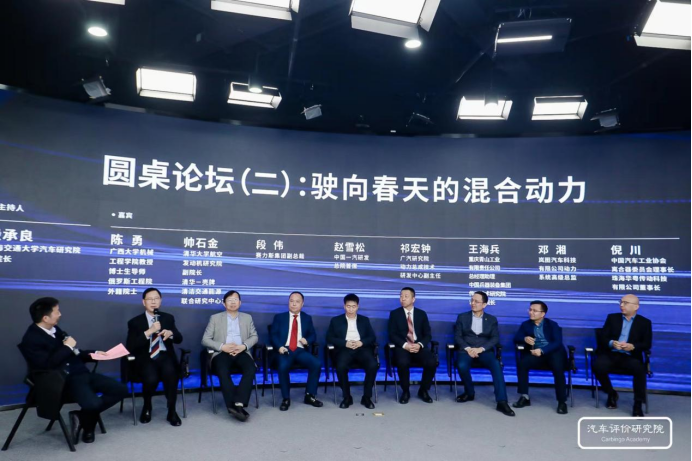 在上海交通大學(xué)教授、汽車研究院副院長(zhǎng)殷承良的主持下,廣西大學(xué)機(jī)械工程學(xué)院教授、博士生導(dǎo)師、俄羅斯工程院外籍院士陳勇,清華大學(xué)教授、航空發(fā)動(dòng)機(jī)研究院副院長(zhǎng)、清華-殼牌清潔交通能源聯(lián)合研究中心主任帥石金,賽力斯集團(tuán)副總裁段偉,中國(guó)一汽研發(fā)總院首席趙雪松,廣汽研究院動(dòng)力總成技術(shù)研發(fā)中心副主任祁宏鐘,重慶青山工業(yè)總經(jīng)理助理、中國(guó)兵器裝備集團(tuán)傳動(dòng)技術(shù)研究院常務(wù)副院長(zhǎng)王海兵,嵐圖汽車動(dòng)力系統(tǒng)高級(jí)總監(jiān)鄧湘,中國(guó)汽車工業(yè)協(xié)會(huì)離合器委員會(huì)理事長(zhǎng)、珠海華粵董事長(zhǎng)倪川圍繞著“駛向春天的混合動(dòng)力”這一主題進(jìn)行了交流討論。