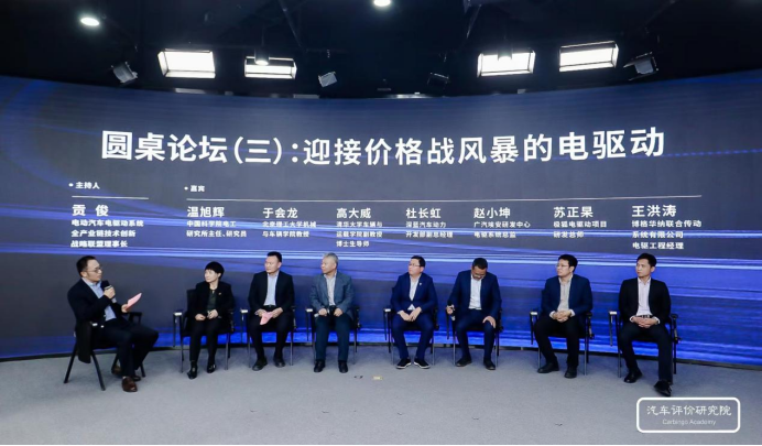 在電動(dòng)汽車電驅(qū)動(dòng)系統(tǒng)全產(chǎn)業(yè)鏈技術(shù)創(chuàng)新戰(zhàn)略聯(lián)盟理事長(zhǎng)貢俊的主持下,中國(guó)科學(xué)院電工研究所主任、研究員溫旭輝,北京理工大學(xué)機(jī)械與車輛學(xué)院教授于會(huì)龍,清華大學(xué)車輛與運(yùn)載學(xué)院副教授、博士生導(dǎo)師高大威,深藍(lán)汽車動(dòng)力開發(fā)部副總經(jīng)理杜長(zhǎng)虹,廣汽埃安研發(fā)中心電驅(qū)系統(tǒng)總監(jiān)趙小坤,極狐電驅(qū)動(dòng)項(xiàng)目研發(fā)總師蘇正杲,博格華納聯(lián)合傳動(dòng)系統(tǒng)有限公司電驅(qū)工程經(jīng)理王洪濤等嘉賓,圍繞“迎接價(jià)格戰(zhàn)風(fēng)暴的電驅(qū)動(dòng)”這一主題進(jìn)行了交流討論。