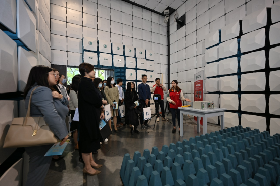 電科院工會主席董正雅帶領活動嘉賓和青年代表參觀電科院創(chuàng)新實驗室、儲能系統(tǒng)。為大家講解高壓變電站產(chǎn)生的電磁場的專業(yè)監(jiān)測設備是如何運作的,并解釋其工作原理。