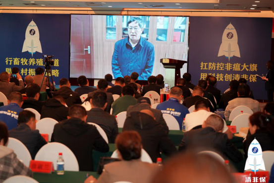 中國(guó)科學(xué)院院士、中國(guó)科學(xué)院亞熱帶農(nóng)業(yè)生態(tài)研究所首席研究員印遇龍,以視頻方式參會(huì),發(fā)表了講話,祝賀科技養(yǎng)豬生產(chǎn)力促進(jìn)中心成立授牌、生物工程試驗(yàn)基地成立暨非洲豬瘟防控新技術(shù)、新產(chǎn)品、新方案的研發(fā)成功和大會(huì)的召開,從堅(jiān)定生豬養(yǎng)殖信心、打造著名豬肉品牌、重視非洲豬瘟防控、培養(yǎng)養(yǎng)殖人才隊(duì)伍等四方面分享介紹了經(jīng)驗(yàn)。