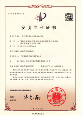 國(guó)家發(fā)明專(zhuān)利證書(shū)-肽素乳固體飲料及其制備方法
