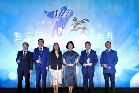活動現(xiàn)場,上海兒童醫(yī)學中心SDR手術中心主任肖波獲得“促進中以醫(yī)療技術交流”杰出貢獻獎,上海猶太難民紀念館館長陳儉獲得“致力于上海猶太歷史保護”杰出貢獻獎,上海金星舞蹈團藝術總監(jiān)金星獲得“促進中以藝術文化交流”杰出貢獻獎,上海鉆石交易所總裁林強獲得“促進中以商貿與文化交流”杰出貢獻獎,南京大學猶太文化研究所所長徐新獲得“致力于猶太文化研究與中以教育交流”杰出貢獻獎,白樂濰為獲獎嘉賓頒獎。這也是以色列總領事館建館以來,首次向中國人授予此榮譽。